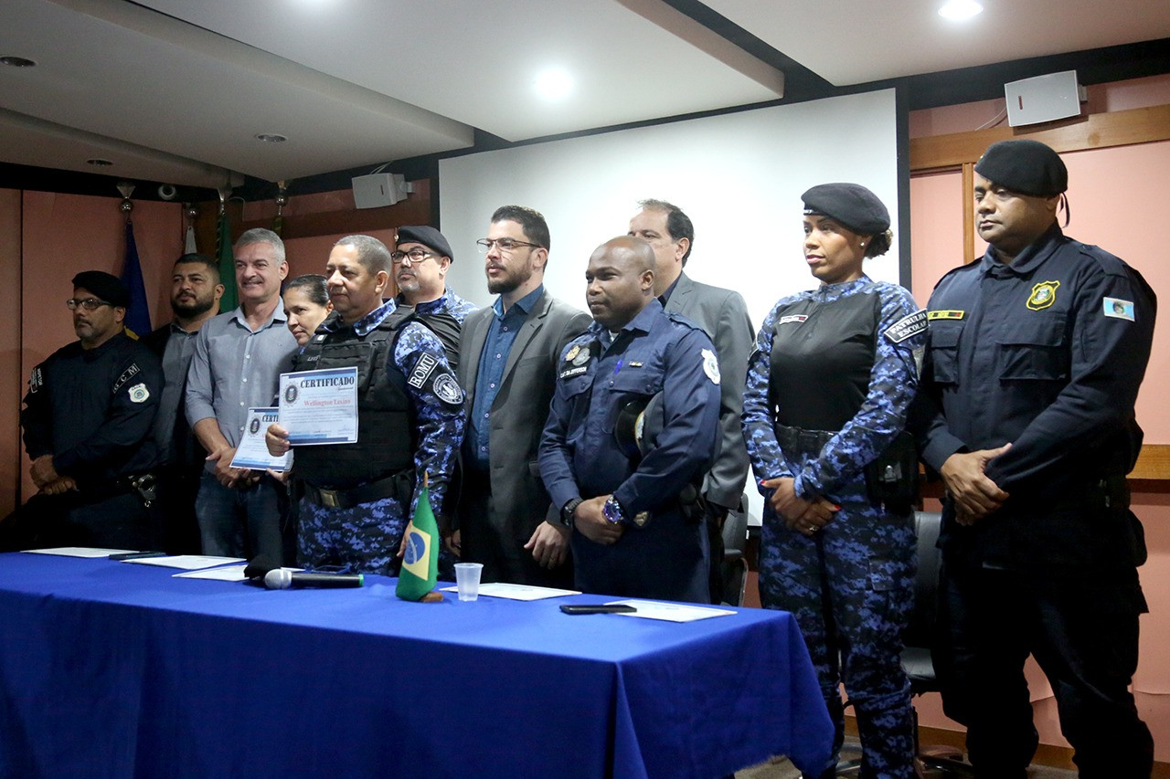 O comandante da Guarda Municipal de Porciúncula, José Renato Neves, também compôs a mesa solene. “É muito importante o trabalho que a Guarda de Campos tem feito, que é dar oportunidade a outras guardas, que, às vezes, não têm condições de estar promovendo cursos como esses. Isso é muito importante”, comentou.