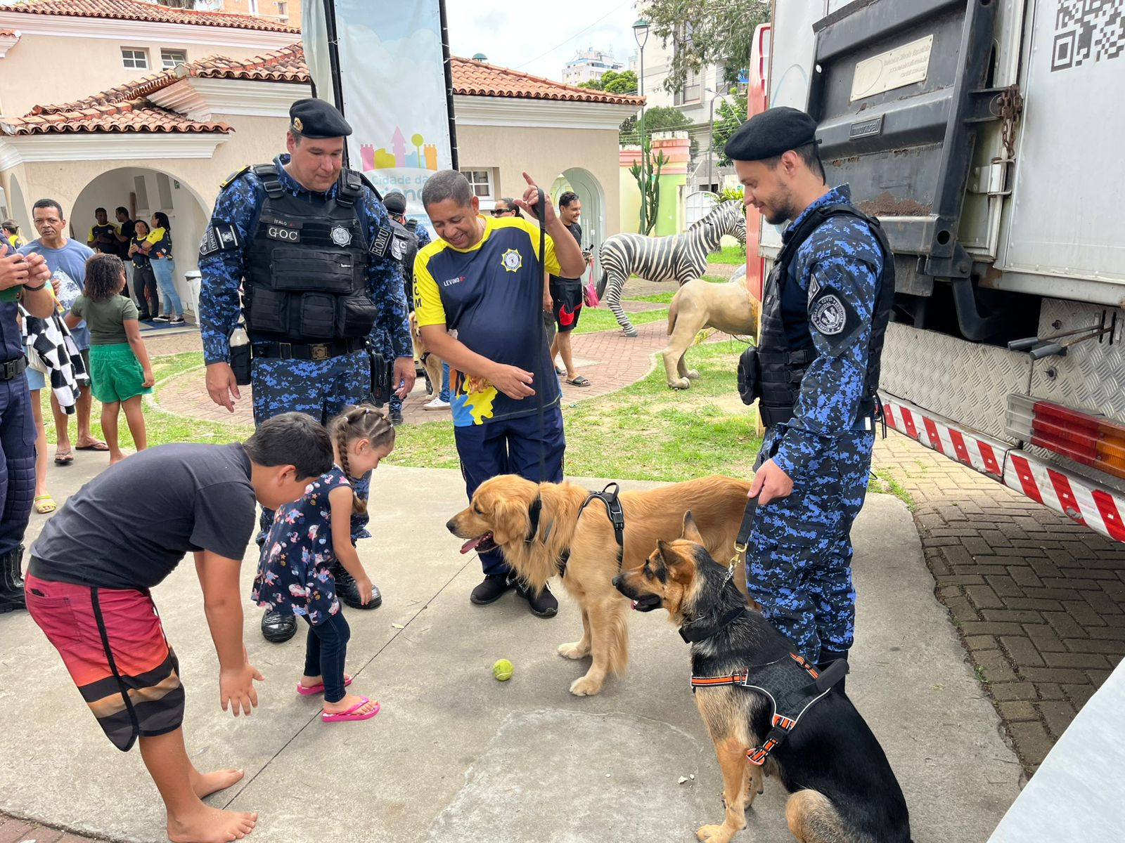 A Banda da Guarda Civil promoveu uma apresentação digna de muitos aplausos, levando música de qualidade para todos os gostos. Além disso, realizou um emocionante passeio de viatura para os alunos da rede municipal de ensino. A participação da Guarda não parou por aí! Além de garantir o ordenamento do trânsito e a segurança no entorno da Cidade da Criança, o órgão realizou a apresentação do Show Dog com o cão Snipe, pintura fácil e outras atividades do projeto Guarda na Praça.