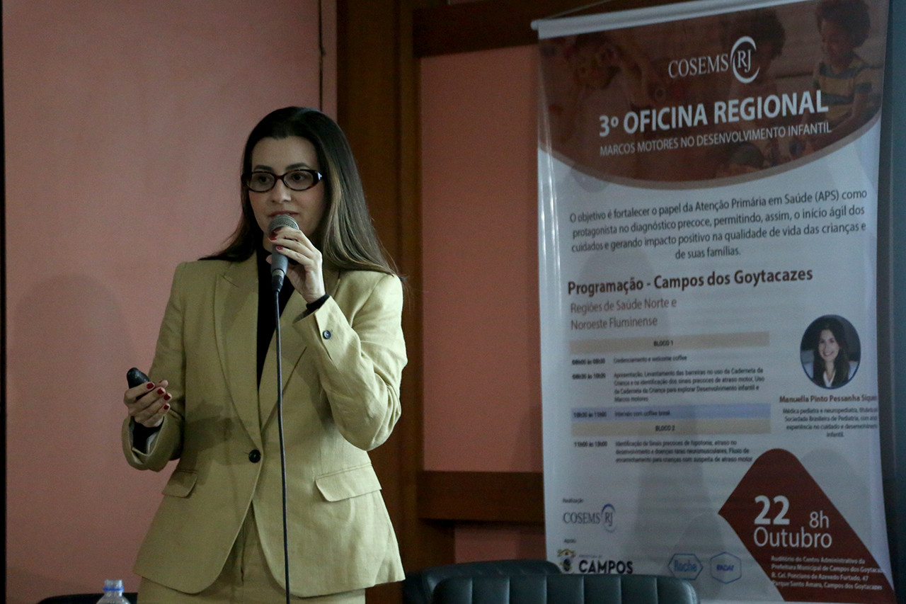Campos sediou, nesta quarta-feira (22), a 3ª Oficina Regional sobre Marcos Motores no Desenvolvimento Infantil, reunindo profissionais de saúde da Região Norte e Noroeste Fluminense. O encontro, promovido pelo Conselho de Secretários Municipais de Saúde do Estado do Rio de Janeiro (Cosems/RJ) com apoio da Secretaria Municipal de Saúde de Campos, aconteceu no auditório do Centro Administrativo José Alves de Azevedo (CAJAA). A atividade destacou a importância da Atenção Primária em Saúde (APS) no acompanhamento do desenvolvimento infantil, incentivando o uso da Caderneta da Criança e a identificação precoce de possíveis atrasos motores.