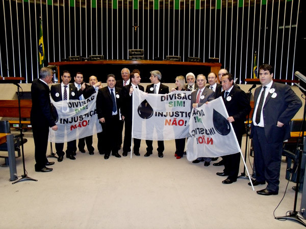 O grupo formado pela Prefeita Rosinha Garotinho, que é vice-presidente da Organização dos Municípios Produtores de Petróleo (Ompetro), os deputados e senadores da Bancada Fluminense começou o manifesto contra a redistribuição dos royalties do petróleo no Salão Negro do Congresso Nacional e, em seguida, partiu para a rampa do Congresso Nacional.