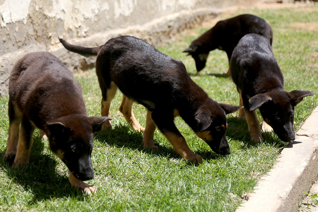 A Laica, a Kyra, a Romanoff e o Togo, todos de 3 meses e da raça Pastor Alemão, chegaram à corporação nesta semana e já estão em treinamento