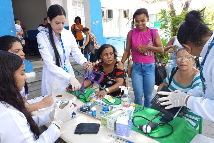 Atividade com medição de glicose, aferição de pressão arterial e orientação nutricional foi promovida pela equipe Linha de Cuidados da Hipertensão e Diabetes com apoio de alunos do curso de enfermagem da Estácio
