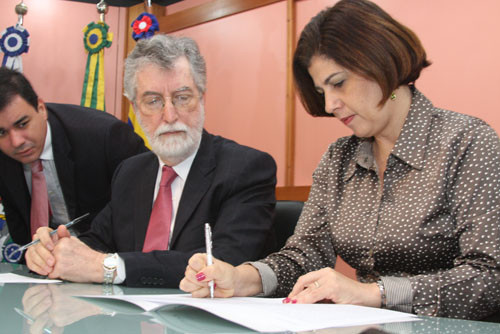 Numa cerimônia breve, devido à agenda do presidente do Tribunal de Justiça do Estado do Rio de Janeiro (TJ-RJ), o desembargador Manoel Alberto Rebello dos Santos, a prefeita Rosinha Garotinho assinou, na manhã desta sexta-feira (21), o termo de doação da área do Fórum Maria Tereza Gusmão de Andrade. A assinatura aconteceu no auditório do Centro Administrativo José Alves de Azevedo, sede da prefeitura. Na ocasião, a prefeita, acompanhada pelo vice-prefeito, Dr. Chicão Oliveira, e do procurador geral do município, Francisco de Assis, anunciou a licitação, a ser realizada no próximo dia nove de novembro, de um ônibus adaptado para servir a justiça itinerante.