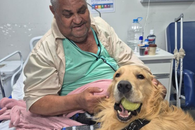 Com objetivo de levar alegria a pacientes internados, Zeus também encantou profissionais e familiares