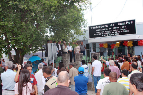 O secretário Paulo Hirano falou dos avanços da saúde em Campos: “Nosso município é o que melhor assiste à população, ficando inclusive na frente do Rio e Niterói, conforme dados do Ministério da Saúde. O Caps de Guarus foi reformado, ganhou novas instalações para um atendimento mais digno a pacientes psicóticos e neuróticos graves. Temos cerca de 300 pacientes cadastrados, que têm acompanhamento médico, mas também aulas de música, de artes e ofício, de educação física, artesanato, toda ma assistência para serem reintegrados à sociedade”.