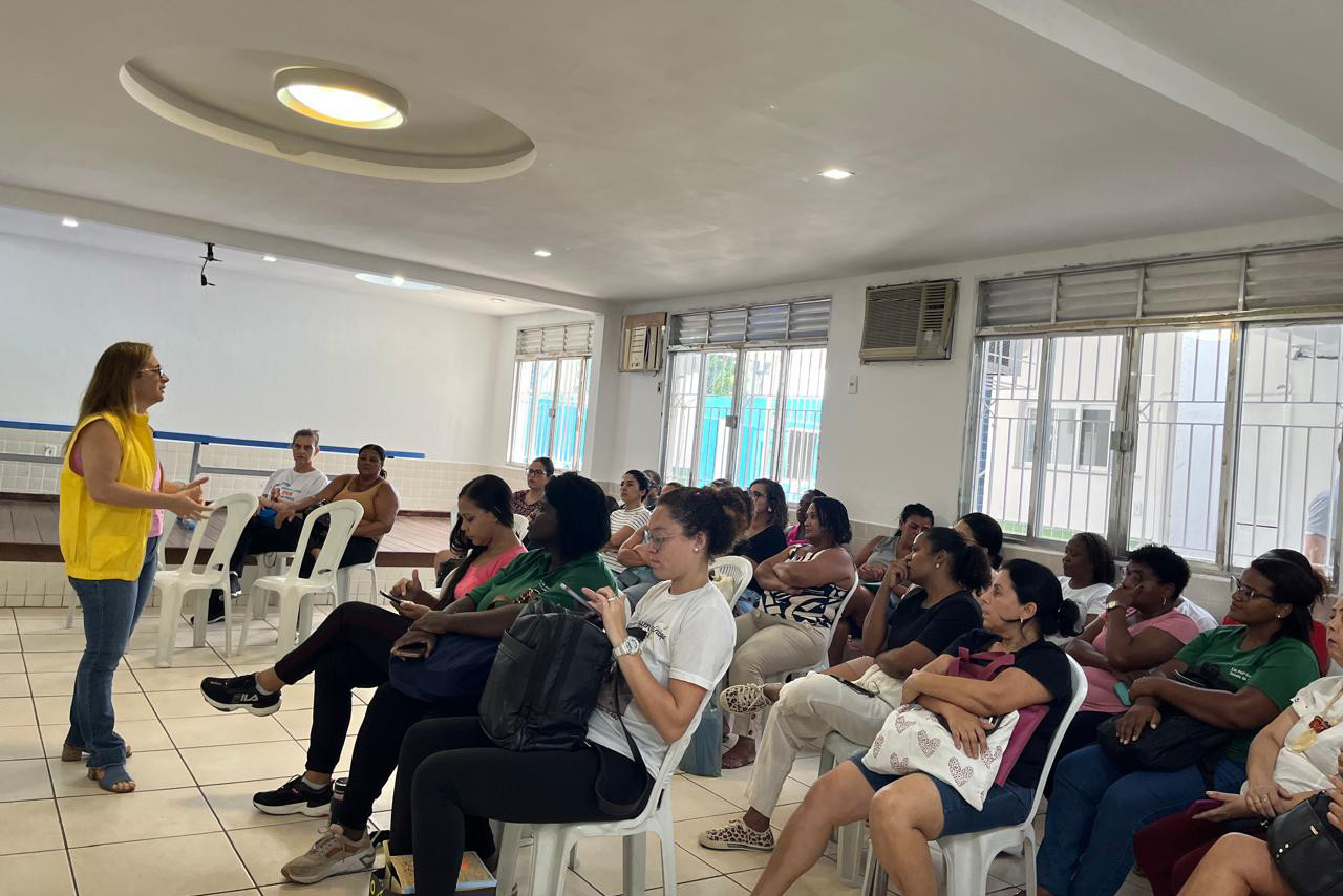 Nesta terça, equipes da Saúde Mental e Comportamento Alimentar realizaram palestra para mais de 50 profissionais da escola do Parque Santa Rosa e a programação segue até sexta-feira