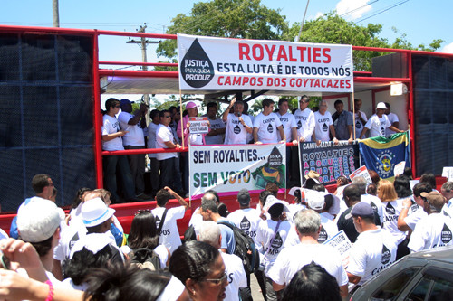 Milhares de campistas não conseguiram representar o município na manifestação em defesa dos royalties, que será promovida pelo governo do Estado do Rio, nesta quinta-feira (10), na Cinelândia. Apesar de, por email enviado, no dia 1º, ao chefe de Gabinete da Prefeitura de Campos, Álvaro Oliveira, o subsecretário de Estado de Governo do Interior, Edilson Silva, ter garantido a disponibilização de 100 ônibus para atender a Campos, apenas 20 coletivos chegaram a Campos e saíram em direção à grande marcha “Contra a injustiça, em defesa do Rio”.