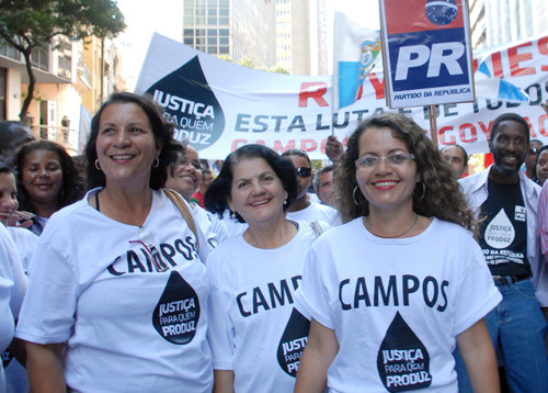 Campos está marcando presença na manifestação em prol da manutenção dos royalties do petróleo para estados e municípios produtores. O ato está acontecendo no Centro do Rio com a participação da Prefeita Rosinha Garotinho. Os 20 ônibus que saíram da cidade nesta quinta-feira (10) estavam lotados e a palavra de ordem era “evitar uma injustiça”. Campos está entre os municípios que mais perderiam com a redistribuição dos recursos para todos os estados e municípios da federação.