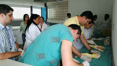Foi encerrada nesta quinta-feira (24), no Hospital Geral de Guarus (HGG), a I Jornada de Prevenção e Tratamento de Lesões Cutâneas, iniciada na terça-feira (22). O curso foi dirigido a enfermeiros da unidade e teve como objetivo atualizá-los sobre o protocolo de tratamento de lesões e uso de coberturas, padronizadas na rede. Uma das curiosidades foi a demonstração prática, realizada em uma pata de vaca. Nos dias 13 e 14 de dezembro, técnicos e auxiliares de enfermagem do HGG farão o curso.
