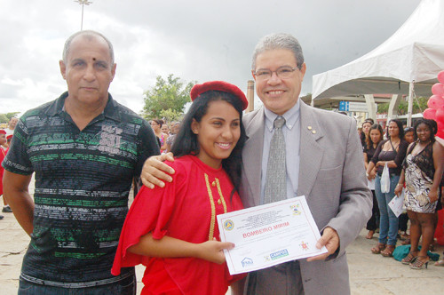 O presidente da FMIJ, Mário Lopes entregou o certificado de primeiro lugar da turma a bombeira mirim, Kissila. Ele explicou que esse projeto proporciona um sonho importante das crianças, de salvar vidas. “Quando eles separam parte do seu tempo livre para participar, inicia uma nova fase em sua vida, de amor ao próximo, disciplina e solidariedade”, completa o presidente.