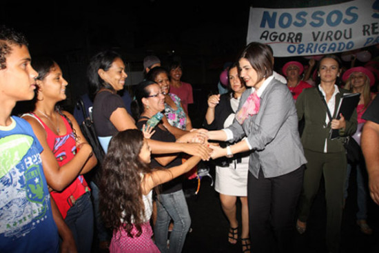 Na chegada, a prefeita foi recepcionada por moradores, que foram agradecer pelas obras, carregando uma faixa com a seguinte descrição: “Nossos sonhos, agora, viraram realidade”. O coral “Lírio dos Vales”, formado por senhoras de uma igreja do bairro, participou da inauguração apresentando um número musical.