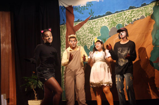 Os alunos do Curso Livre de Teatro da Fundação Cultural Jornalista Oswaldo Lima apresentaram na tarde desta quarta-feira (07), no Palácio da Cultura, o espetáculo. “Os Saltimbancos”. Uma história de quatro animais muito diferentes entre si, que buscam um só ideal para suas vidas, ou seja, escapar da opressão de seus donos. A vice-presidente da Fundação, Maria Helena Gomes, disse que a peça vai se apresentar, ainda, nos dias 10 e 11, sempre às 17h, com entrada franca e livre para todos os públicos.