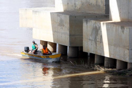 Defesa Civil trabalha na limpeza dos pilares das pontes