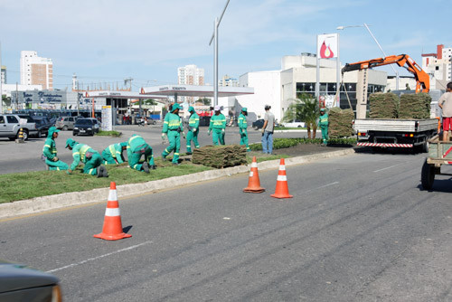 O trabalho de paisagismo da grande área da Estrada do Contorno termina esta semana. Quarenta homens da Secretaria de Obras e Urbanismo estão no local, distribuídos em duas frentes, para o plantio de mudas, retirada da grama velha e colocação de nova grama. O serviço vem sendo realizado há cerca de 20 dias e está em fase de finalização, segundo o secretário Edilson Peixoto.