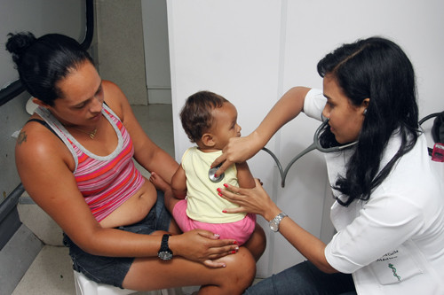 A pequena Raimily, de 8 meses, foi uma das crianças atendidas nesta manhã. “Raimily está gripada e precisou de pediatra. Estou aproveitando a oportunidade para pôr em dia as vacinas da minha filha” diz a mãe, Bianca Cabral.