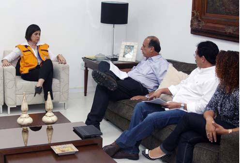A Prefeita Rosinha Garotinho recebeu na noite desta segunda-feira (09) o vice-governador do Estado, Luiz Fernando Pezão, que cumpre agenda regional de trabalho nos municípios afetados pelas enchentes no Norte e Noroeste Fluminense. No Gabinete, acompanhada do secretário de Defesa Civil de Campos, Henrique Oliveira, a prefeita Rosinha falou de sua preocupação em relação ao estado precário das comportas dos canais que são operadas pelo Inea (Instituto Estadual do Ambiente), e pediu providências junto ao órgão.