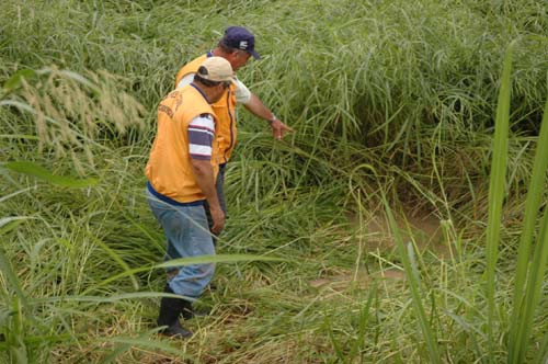 O subsecretário de Defesa Civil de Campos, major Edison Pessanha, acompanhado do secretário de Defesa Civil de Cardoso Moreira, Juarez Noé; sinalizou um ponto próximo ao dique Santa Bárbara, que está com uma infiltração, que pode comprometer o dique, ameaçado de ruir.