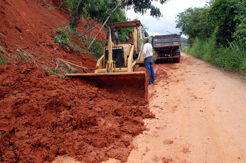 Máquinas trabalham na desobstrução de estradas