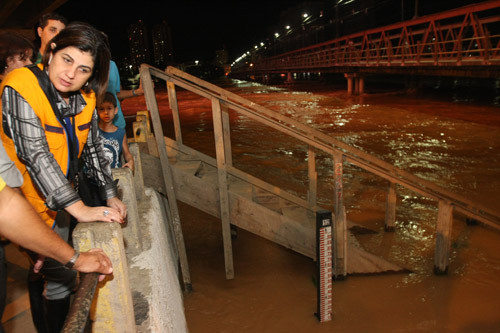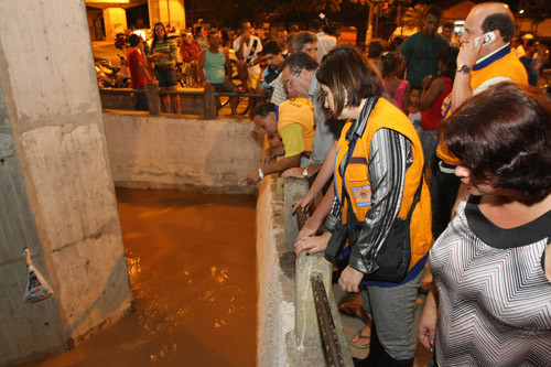 Na rua, várias pessoas cumprimentam a prefeita e dão informações sobre locais onde há saída de água nas ruas através dos bueiros. Os endereços são anotados e, imediatamente, repassados para o central da Defesa Civil, de onde saem caminhões com sacos de areia para cobrir os bueiros e reduzir o volume da vazão de água.