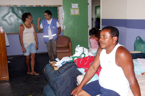Ao todo, na área urbana, são 12 abrigos, com 230 famílias da Ilha do Cunha, Parque Prazeres, Matadouro, Tira Gosto e Chatuba do Lebret. Na zona rural, 28 famílias de Três Vendas estão nas escolas Albertina Venâncio, em Travessão, e Nossa Senhora da Conceição, perto de Outeiro, além da casa de apoio montada no Morro do Tirranha e do Tonico. Outras 546 famílias permanecem nas lajes de suas casas em Três Vendas, recebendo água, alimentos, medicamentos e atendimentos médicos.