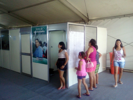 Uma relação de empregos foi afixada na entrada da tenda e já começa a chamar a atenção de quem passa pelo local. Empregos como padeiro, atendente, pedreiros e até mesmo professores das mais diversas áreas, estão sendo oferecidos e a procura já começou. Os interessados devem apresentar currículo para as vagas oferecidas e, após a verificação de que o candidato está dentro das condições necessárias, ele é direcionado para a empresa, para os trâmites legais de contratação.