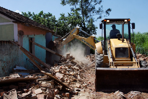 A Defesa Civil segue com o trabalho de demolição de casas de área de risco. Muitas famílias retiradas dessas áreas e levadas para condomínios residenciais do Programa Morar Feliz ficaram livres da enchente deste ano. Nesta terça-feira (17), foi feita a demolição de cinco casas da Rua Dario Canela, antiga Rua do Limão, na beira da vala de drenagem da Usina São José, próximo à Estrada do Canema, em Goitacazes. O trabalho de demolição foi supervisionado pelo técnico de Edificações da Defesa Civil, Orlando Pavoni. Essas famílias já mudaram para o Conjunto Habitacional do Programa Morar Feliz do Parque Novo Jóquei.
