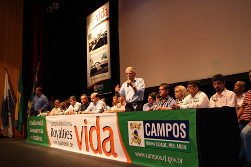 “Dentro um mês, a cidade de Campos será novamente transformada em um canteiro de obras”. A declaração foi feita pela Prefeita Rosinha Garotinho que, junto com o vice-Prefeito Doutor Chicão, lançou no Teatro Trianon, na noite deste terça-feira (20), mais um pacotão de obras de R$ 132 milhões, provenientes dos royalties. As obras vão contemplar moradores da cidade e do interior. A prefeita esclareceu que uma parte das licitações está concluída e outra em andamento.