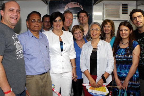 Sete palestrantes de diferentes nacionalidades que participam, em Campos, até sexta-feira (23) do 3º Encontro Internacional de Astronomia e Astronáutica, foram à Passarela do Samba Dalvino Costa para prestigiar o Carnaval fora de época da cidade que, este ano, homenageia os “100 anos de Noel Rosa”. Acompanhados pelo coordenador do Clube de Astronomia Louis Cruls e organizador do evento, Marcelo de Oliveira, os cientistas visitaram o camarote da prefeita Rosinha Garotinho, e falaram sobre a acolhida que tiveram na cidade.