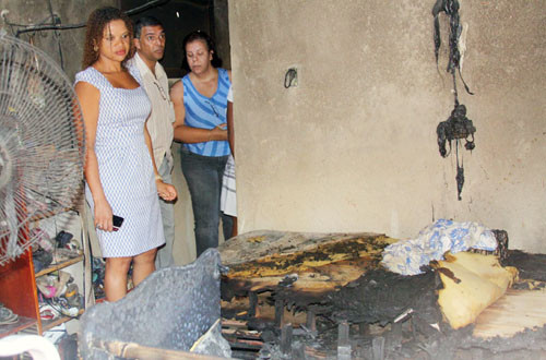 A secretária Izaura Freire, junto com a assistente social, Adriana Caetano, estiveram nesta quinta-feira (23), na casa que foi incendiada na quarta-feira (22), no Parque Esplanada. No momento do acidente, estavam em casa quatro crianças, incluindo um bebê de quatro meses, Nícolas Cruz Dias Sardinha da Conceição, que veio a óbito.