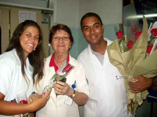 A Fundação Municipal de Saúde, por meio da Assessoria de Gestão de Pessoas e da Superintendência de Administração e Finanças, homenageou nesta quinta-feira (8), as funcionárias do Hospital Ferreira Machado e do Hospital Geral de Guarus pelo Dia Internacional da Mulher. No HFM, os funcionários da recepção e da portaria, Ubirajara Gervázio e Amanda, distribuíram rosas vermelhas e cartões para as funcionárias.