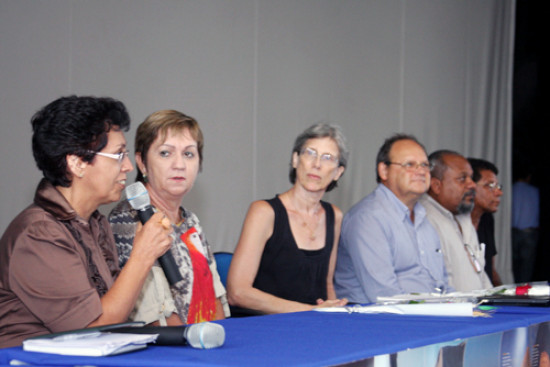 Na mesa de abertura estavam presentes o Secretário de Cultura de Campos, Orávio de Campos Soares, a secretária de Educação, Joilza Rangel, o reitor da universidade, Silvério Freitas e o Pró-reitor, Paulo Roberto Nagibe, entre outros. A palestrante e viúva de Abdias Nascimento, Elisa Larkin Nascimento (Ipeafro) falou das formas de expressão de Abdias, voltadas para o avanço da causa anti-racista e presenteou os convidados da mesa e inscritos no fórum, com um kit educacional Sankofa.