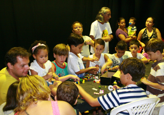 Vivência Teatral – Descobrir o teatro, brincando. A imaginação originou criativas histórias na dinâmica “A caixa mágica de contar histórias”, conduzida pelo ator e educador Rafael Sánchez. Em uma caixa com pequenos objetos de plástico, surgiram as ferramentas de criação que as crianças utilizaram para contar histórias construídas durante o encontro. No lugar do cenário, uma mesa. A plateia deixou as cadeiras e foi para o palco, se tornando o elenco e acompanhado, e perto, a brincadeira das crianças. O resultado foi produtivo para crianças e adultos.