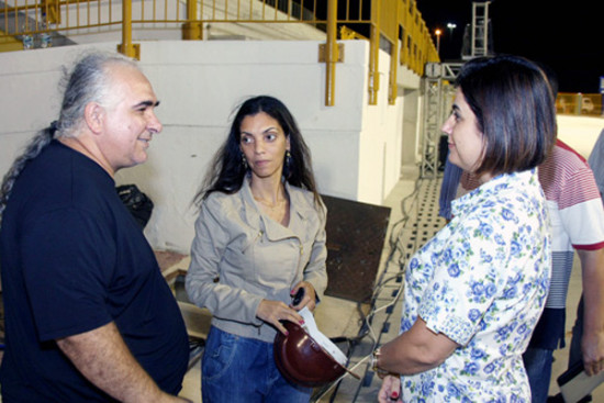 A prefeita inspecionou detalhadamente durante cerca de duas horas varias instalações, como os compartimentos técnicos de som, iluminação, central de controle operacional que conta 20 câmeras de alta definição, com visão digital em 360 graus em todas as dependências internas e externas do Cepop, espaço para 40 mil pessoas, sendo 15 mil sentadas nos dois lances de arquibancadas e camarotes.