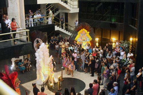 O foyer do Teatro Municipal Trianon ficou lotado na noite desta segunda-feira (16), para a abertura da exposição de fantasias do estilista Nelcimar Pires. A Prefeita Rosinha Garotinho prestigiou o evento, ao lado da presidente da Fundação Trianon, Aline Ferreira. A festa contou com as presenças do carnavalesco e diretor artístico da Cidade do Samba, Milton Cunha; do organizador do Brazilian Carnival Ball, Howard Gillick e da coordenadora do Miss Estado do Rio, Susana Cardoso. Carnavalescos, passistas e compositores do carnaval campista também prestigiaram o evento.