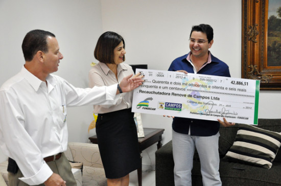 Cumprindo com contratos assinados antes mesmo de sua gestão e demonstrando credibilidade, transparência e compromisso, a Prefeita Rosinha Garotinho entregou, na manhã desta quinta-feira (26), ao proprietário da Renove Recauchutadora, Marcos Chalita, um cheque no valor de R$ 42.886,50 referente à devolução de juros pagos pela empresa em dois contratos firmados com o Fundo de Desenvolvimento de Campos (Fundecam).