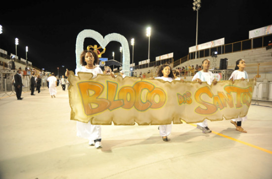 O Bloco Unidos dos Santos abriu neste sábado (28) o segundo dia dos desfiles do Campos Folia 2012 na passarela do samba Rubens Pereira, no Centro de Eventos Populares Osório Peixoto (Cepop). O bloco é formado por 20 igrejas evangélicas aliançadas e lideradas pela Comunidade Evangélica Presbiteriana do Parque Santa Rosa. Cerca de 1500 componentes, todos cristãos felizes que servem a Jesus, desfilaram em seis alas apresentando o enredo “Um Louvor ao Deus Eterno”.