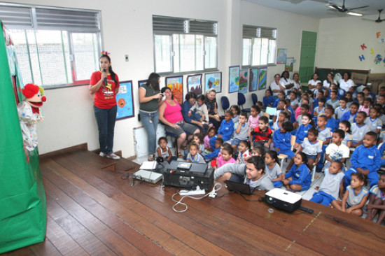 O projeto “Merenda saudável é merenda colorida”, que visa estimular os alunos da rede pública para uma alimentação mais balanceada e nutritiva, esteve nesta terça-feira (08) na Escola Municipal Presidente Castelo Branco, na Pecuária. Na ocasião, alunos e professores puderam conferir uma apresentação teatral recreativa que deixaram os pequenos bem entusiasmados com o tema. E, nesta quarta (09), o evento acontece na Creche Escola Sérgio Lilico, no Parque Cidade Luz.