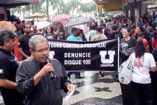Passeata sob chuva marca "Todos contra a Pedofilia"