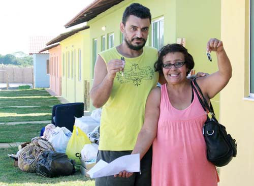 Uma das pessoas que mais se emocionou com o fato de ter ganhado uma casa da prefeitura foi a autônoma Ledilça Gomes dos Santos Barroso, de 56 anos, que chorou de felicidade ao receber a chave da casa. Ela, que saiu da beira da Lagoa do Vigário, onde morava há seis anos, disse que não aguentava mais ter de tirar caramujo e fezes de dentro de casa. “Estava doida para sair daqui, era muito ruim. Tinha até fezes entrando”, lembrou Ledilça, que voltou a se emocionar ao entrar na nova residência.
