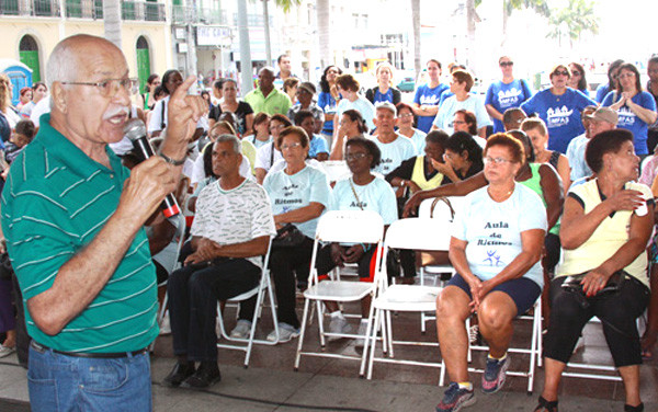 A coordenadora do Serviço de Convivência e Fortalecimento de Vínculos do Idoso, Silvia Peixoto, explica que hoje é a segunda parte do alerta e mobilização pela Semana Nacional de Combate à Violência contra Pessoa Idosa. Ela explica que a maior proposta a partir da realização de um evento como esse, em praça pública, é conscientizar e unir todas as instituições para o combate às agressões à pessoa idosa.