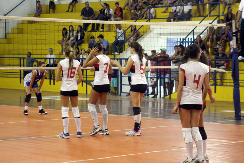 O time feminino jogou primeiro, às 14h e encontrou dificuldades contra a forte equipe do Flamengo. As meninas de Campos perderam por 3 sets a 0, com parciais de 17 a 25, 08 a 25 e 18 a 25. O coordenador do vôlei da FME, Aníbal Vagner, classificou a derrota como normal, dadas as circunstâncias da partida e o alto nível do adversário. “As meninas estão fazendo sua estreia esse ano. Elas sentiram o peso e acabaram perdendo, mas isso não altera o nosso trabalho, pois a equipe do Flamengo foi formada há mais tempo, ainda temos em nosso plantel meninas que estão em idade da categoria mirim, no fim fizemos um bom jogo”, declarou o coordenador.