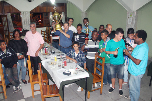 A equipe de futebol da categoria sub 15 da Fundação Municipal da Infância e da Juventude celebrou na noite desta segunda-feira (30) a conquista da Taça Rio-Minas. Pelo desempenho e comportamento nas partidas, todos atletas e comissão técnica que sagraram-se campeões do certame foram contemplados com um jantar numa churrascaria da cidade. O Torneio Rio-Campos teve a participação de atletas das cidades de Carangola (MG); Caparaó (MG); Muriaé (MG); Patrocínio do Muriaé (MG); Eunápolis; Natividade; Bom Jesus do Itabapoana; Quissamã; Rio das Ostras; São Francisco de Itabapoana e Campos.
