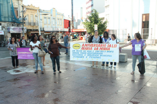 Na manhã desta quarta-feira (08), o Conselho Municipal dos Direitos da Mulher (Comdim) fez uma caminhada pelas ruas centrais da cidade em comemoração aos 6 anos de aniversário da Lei Maria da Penha. A concentração foi no Calçadão, próximo à Catedral Diocesana.