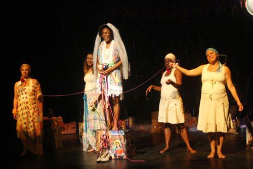 No espetáculo cênico-musical, as cinco atrizes dividem o palco com momentos de destaque, através das personagens que interpretam. Eliana Carneiro dá vida a Tibéria, dona de um bordel que narra à história de uma jovem rameira que morreu no lugar Guma, grande herói do romance, durante uma confusão. Simone Pedro é Rita, uma licença poética desta adaptação. Katiana Rodrigues é Lívia, a mulher que se casa Guma, depois de conhecê-lo durante uma festa em homenagem a Iemanjá.