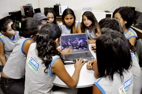 O trabalho de Paloma Soares, de 13 anos; Joyce Caroline Moço e Lhúrya Pereira dos Anjos, de 12, realizado no laboratório de informática da escola, é coordenado pelo presidente do Clube de Astronomia Louis Cruls, Marcelo de Oliveira.