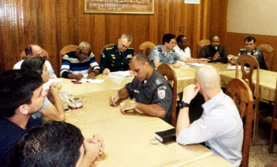Participam da reunião junto com o Coronel do 8º BPM, Lúcio Flávio Barocha, e do subcomandante João Carlos Alves Ribeiro, o Coordenador de Segurança e Ordem Pública, Alcenir Pascoutto, e o diretor de Direitos Humanos e Cidadania da secretaria da Família e Assistência Social, Evanilson Fidélis.