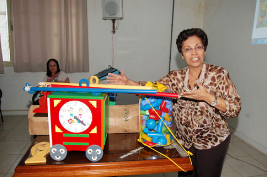 Entre os materiais pedagógicos apresentados nesta segunda-feira estão carrinho de atividades, com jogo de associação percorra o caminho, quebra cabeça, ábaco com argolas coloridas, relógio digital e analógico; jogo pesque e brinque e casinha em MDF de três andares e cinco cômodos, com mobiliário. São brinquedos e jogos pedagógicos com selo do Inmetro, para crianças a partir de 3 anos.