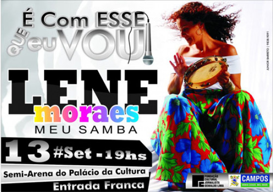 A abertura do projeto “É com esse que eu vou" acontece na noite desta quinta-feira (13) na semiarena do Palácio da Cultura, com a cantora Lene Moraes, às 19h, que vai apresentar o show "Meu Samba". A proposta do projeto é estimular, mapear, conhecer, aprender, fomentar e apresentar aos campistas os artistas locais, não apenas os já consagrados, mas também, os novos talentos. Quem for curtir a apresentação da sambista, vai ouvir sucessos de todas as vertentes do ritmo num cenário montado no palco em forma de um bar.