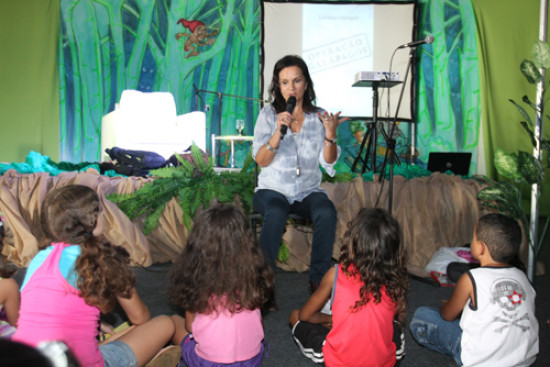 Cerca de 50 crianças ficaram encantadas na tarde deste sábado (24) com as histórias da escritora e jornalista Luciana Savaget em Operação Galápagos, nas Leituras da Caverna da 7ª Bienal do Livro de Campos – Leitura que Muda o Mundo –, no Centro de Eventos Populares Osório Peixoto (Cepop). Um livro que trata de temas como ética e preservação ambiental, o que permite ao leitor refletir e também conhecer um pouco mais sobre biologia, geografia e geopolítica através de um texto de ficção.