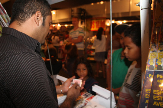 Objetos que desaparecem e reaparecem em outros locais e tantas outras mágicas atraíram a atenção da criançada que passava pelo estande Toque Mágico Livros, neste domingo (25), na 7ª Bienal do Livro, no Centro de Eventos Populares Osório Peixoto (Cepop). O mágico e expositor Erley Castro, 32 anos, encantou os pequenos que passavam pelo local, com seus truques e artifícios de ilusionismo, dando a impressão de que algo impossível realmente aconteceu.